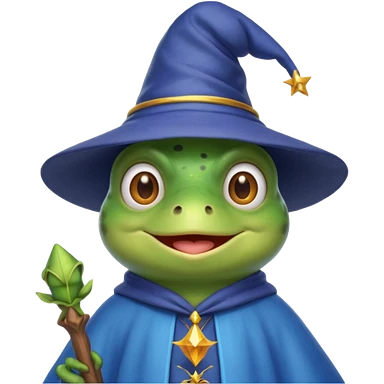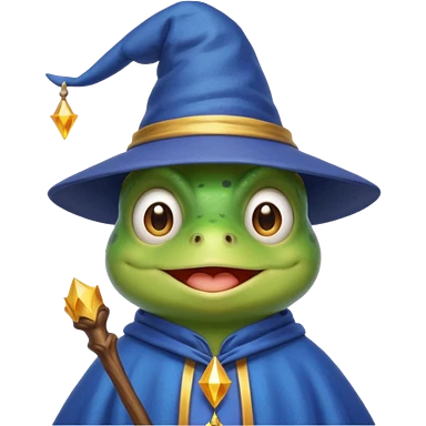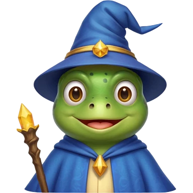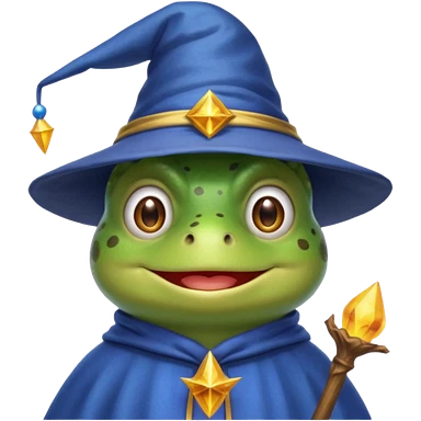 create a peepo the frog emoji that is a wizard like this one called zabuzard but kabukard instead give it a wizard hat and a blue shirt like always give it a good smile emoji