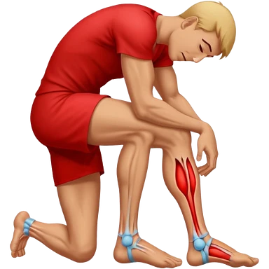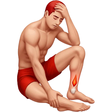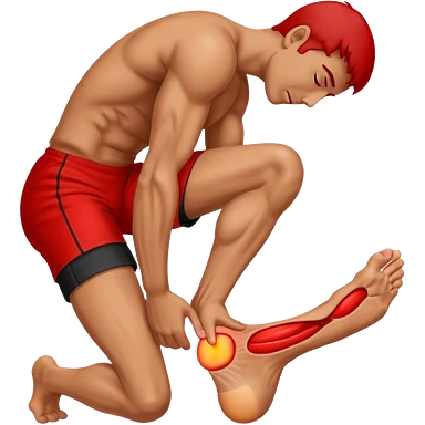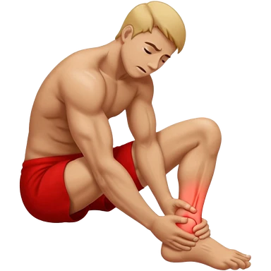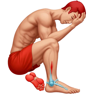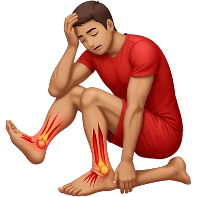Man holding his foot in pain, muscle cramp in feet, red pain highlight on foot, simple medical emoji style, clean background emoji