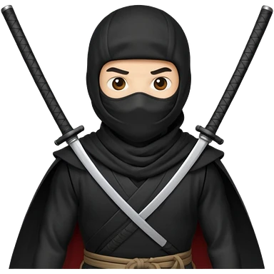 Emoji con estos dos emojis 🦋 🥷🏻. Ninja vestido de negro con los ojos de color negro y la piel blanca y con la mariposa posada en su hombro izquierdo como si estuviera volando en su hombro. emoji