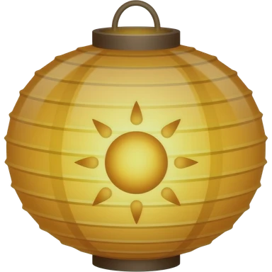 "Emoji de lanterna flutuante dourada inspirada em Rapunzel, feita de papel com brilho quente interno, símbolo de sol no centro, estilo simples, fofo e mágico, com contornos suaves e fundo transparente." emoji
