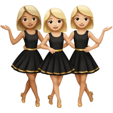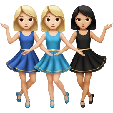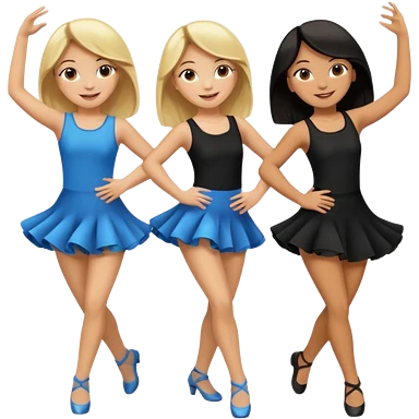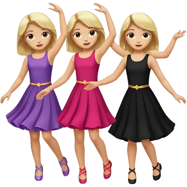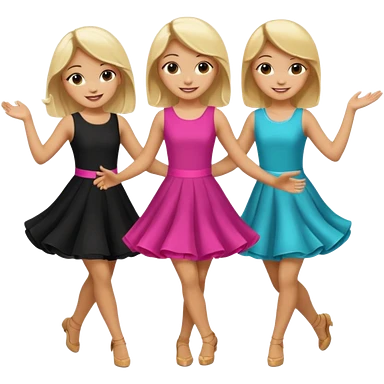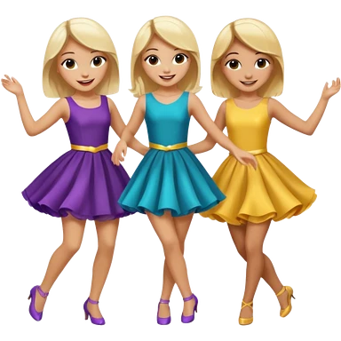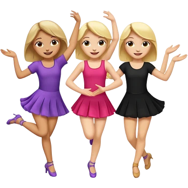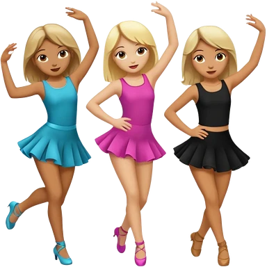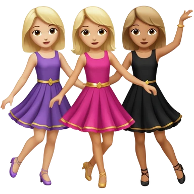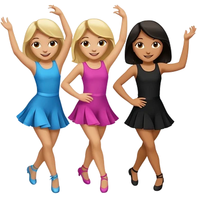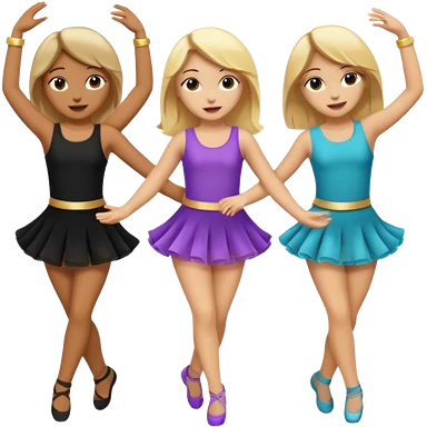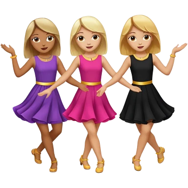 Emoji of 3 Girls dancing ONLY ONE with blonde hair, one tan skin with brown hair ONLY ONE IS BLONDE emoji | AI Emoji Generator