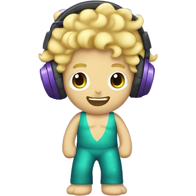 create me a emoji of a mermand wearing headphones wearing purple skin and blond hair blue eyes curcly hairy midium length emoji