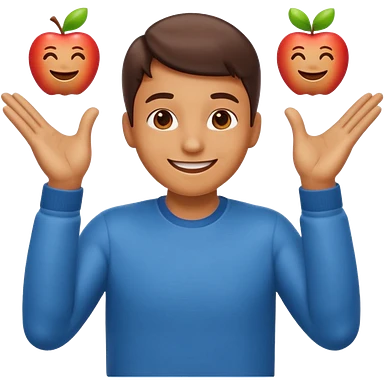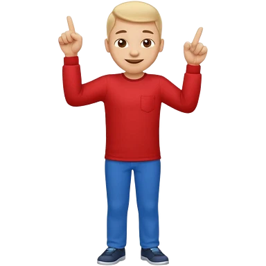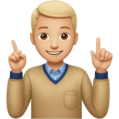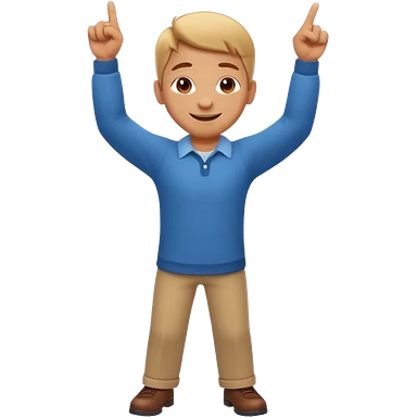 emoji of a happy cartoon person pointing downward toward the ground with both hands, standing upright, smiling warmly, both index fingers extended and pointing down clearly, simple light background, expressive and playful Apple emoji design showing the meaning “here / down here emoji | AI Emoji Generator