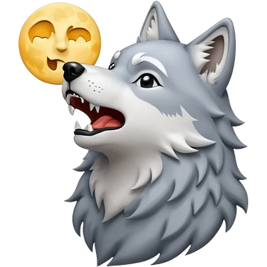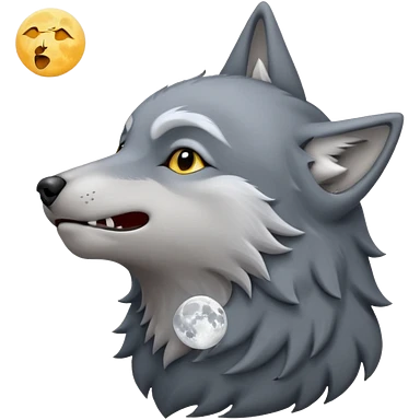 emoji of a howling wolf facing the moon, with its head tilted upward, simple cartoon style emoji | AI Emoji Generator
