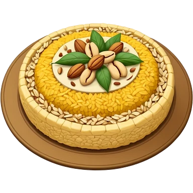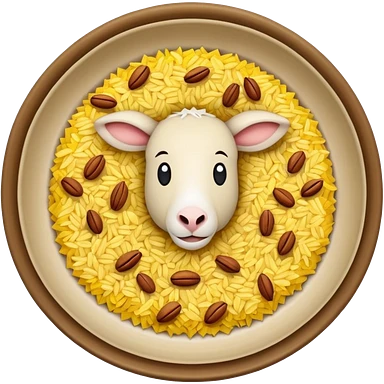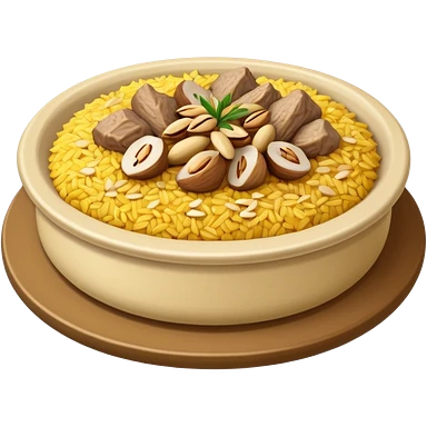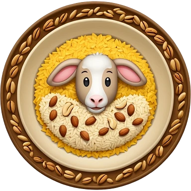 "Emoji of a Jordanian Mansaf dish — round platter with golden rice, lamb pieces, nuts on top, simple cute cartoon style, clean lines, white or transparent background." emoji | AI Emoji Generator