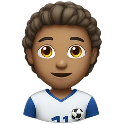 make an emoji of face of a young 11 year old boy wearing blue plain t-shirt and brown skintone with strait hairs and big ears and eye brows emoji