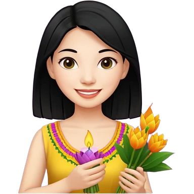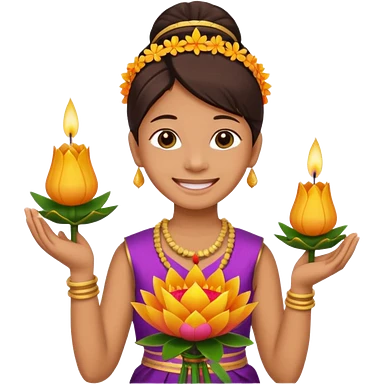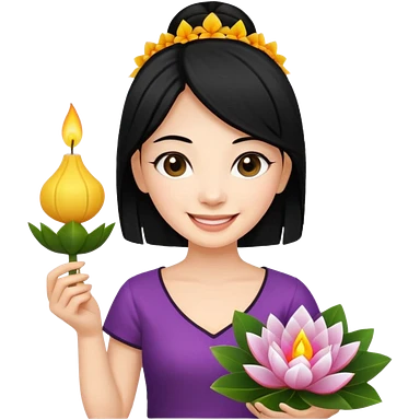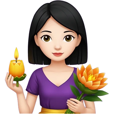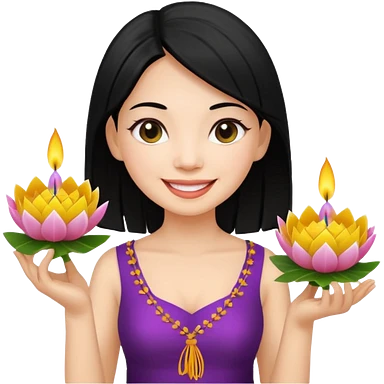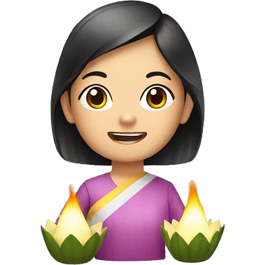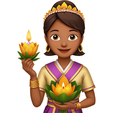 Beautiful woman emoji holding a krathong emoji