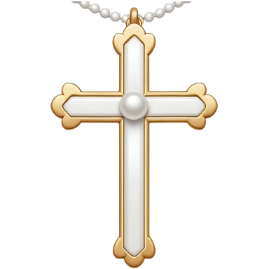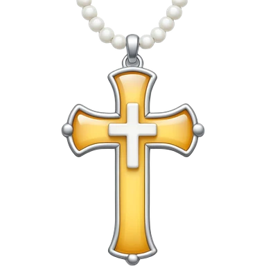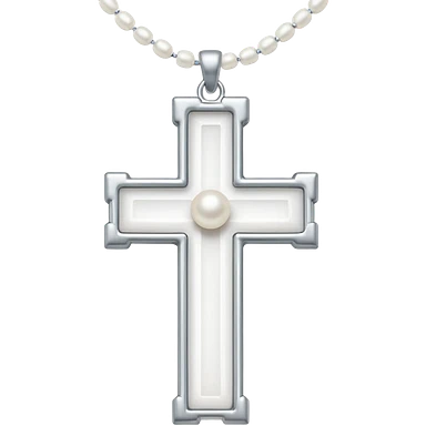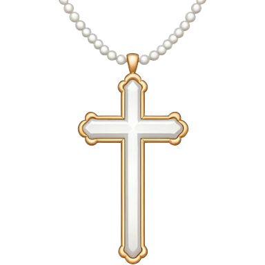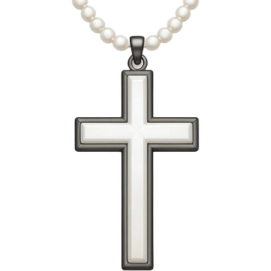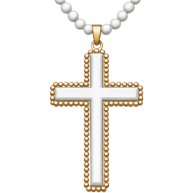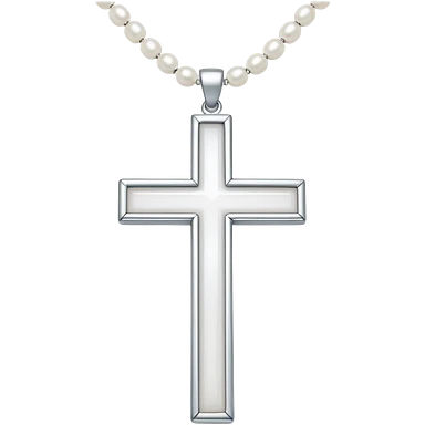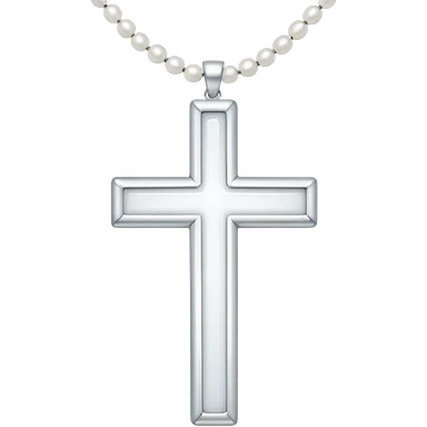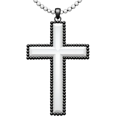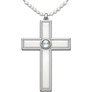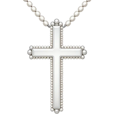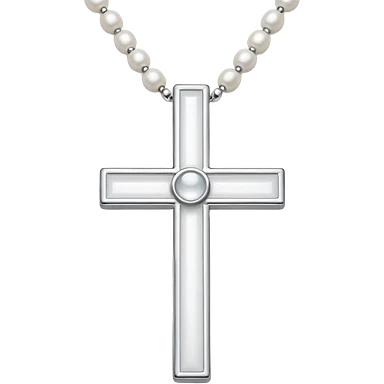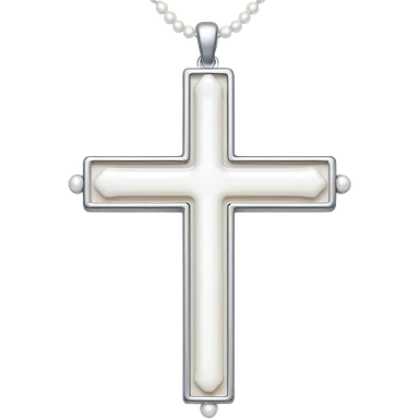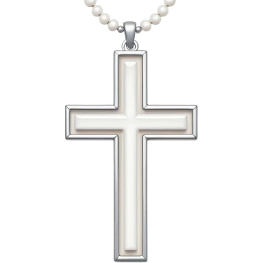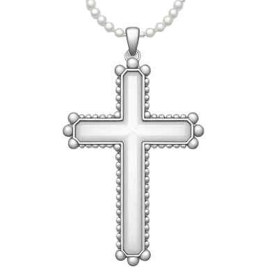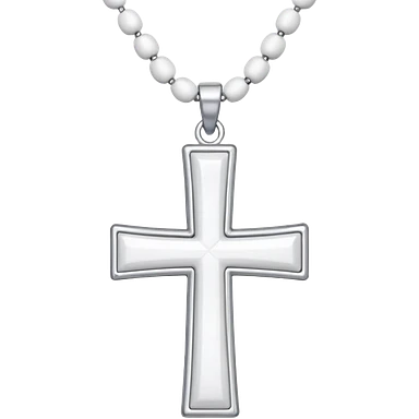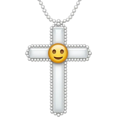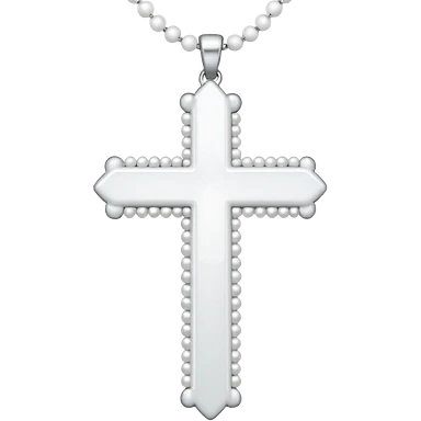 Elegant emoji icon of a white cross made of white beads, glossy surface, and white bead chain subtle shadows, pure white palette emoji