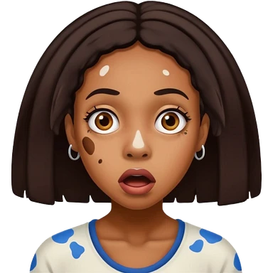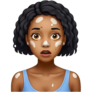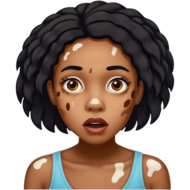 Emoji of a very shocked black female with vitiligo (alot of vitiligo patches) emoji | AI Emoji Generator
