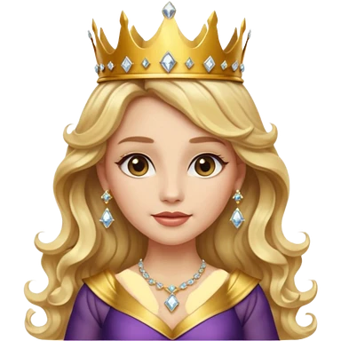 stunning female memoji, long blonde wavy hair, wearing a golden crown, diamond earrings, elegant dress, confident and regal aura stunning female memoji, long blonde wavy hair, wearing a golden crown, diamond earrings, elegant dress, confident and regal aura emoji