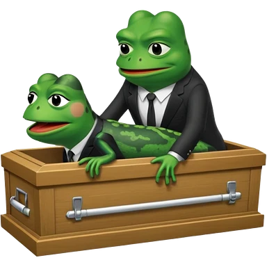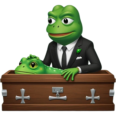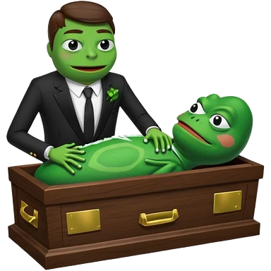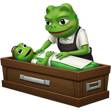 A coffin with "ECHO" written on it, being nailed shut by a Pepe the frog character. emoji
