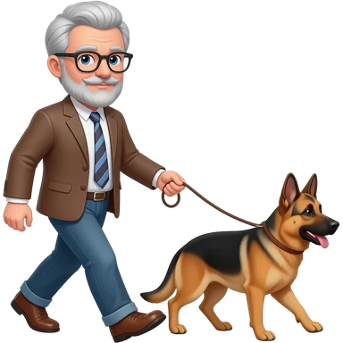 Emoji of an Older man with gray hair beard and glasses Man walking shepski dog on a leash emoji emoji | AI Emoji Generator