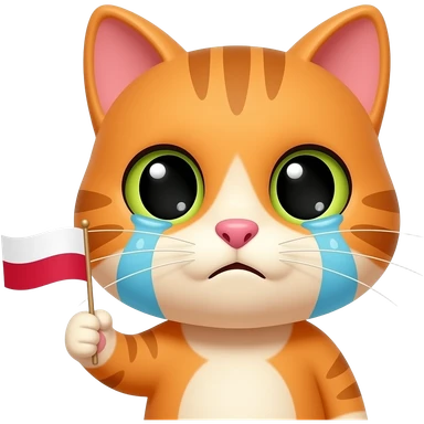 ios style emoji of orange head cat crying with polish flag in hand only face emoji
