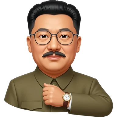 Grey haired general Kim il sung wearing mao suit and large glasses emoji