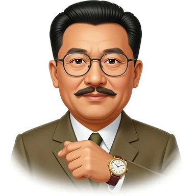 Emoji of dear leader kim il sung wearing white uniform smiling as he looks at you through his big glasses emoji | AI Emoji Generator