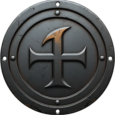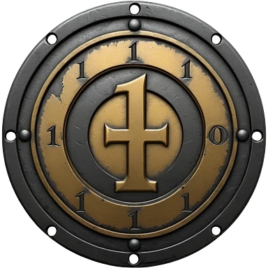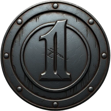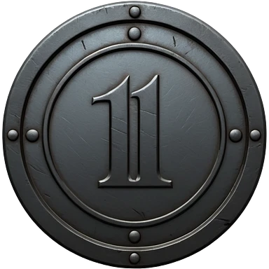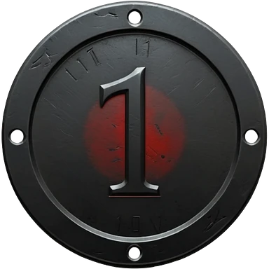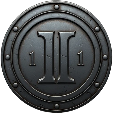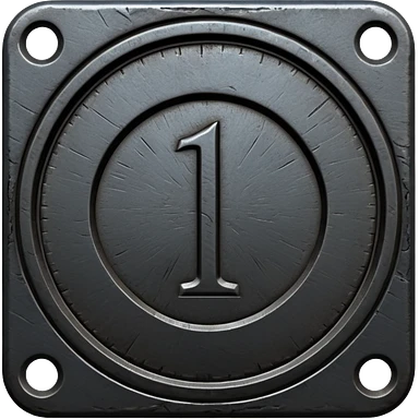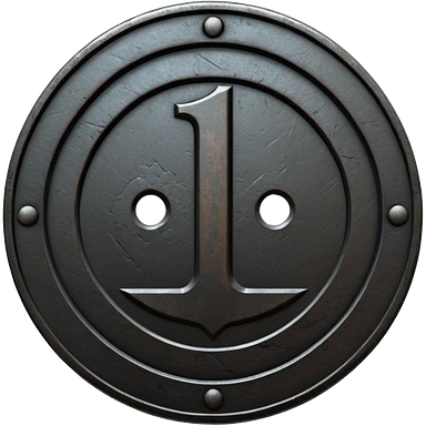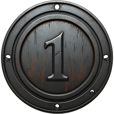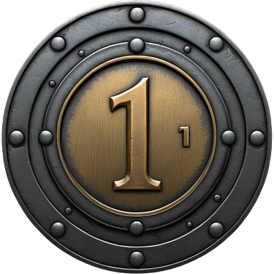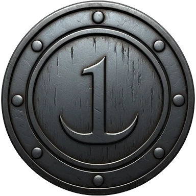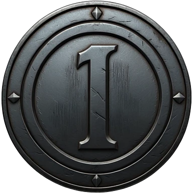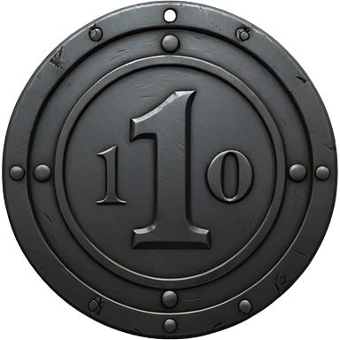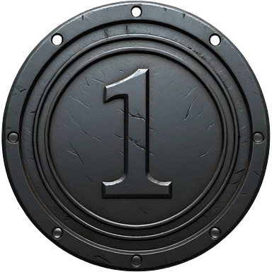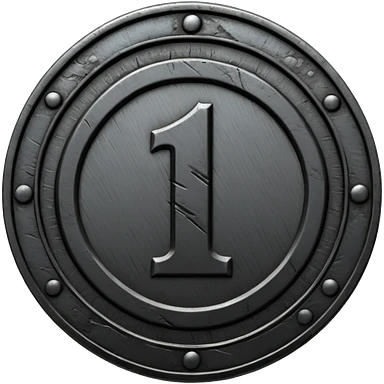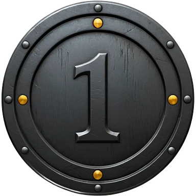 Minimal emoji, gothic metal coin made of black steel, engraved number 1 at the center, ancient industrial aesthetic, worn metal texture, no glow, no neon, flat emoji design, centered, transparent background emoji