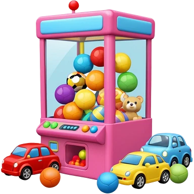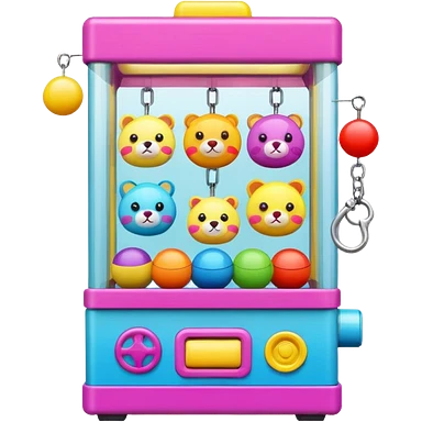 red claw machine, no smile, no emoji, realistic toys inside emoji