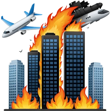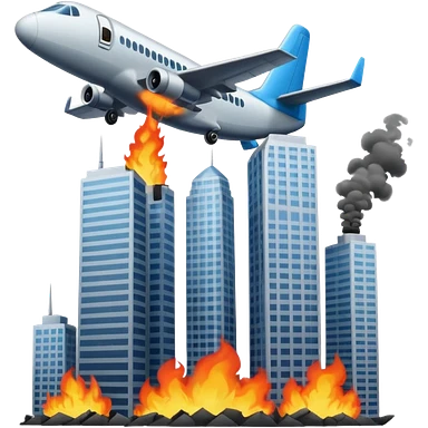 Two similar skyscrapers and the plane that crashed into them. emoji
