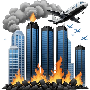 emoji of the world trade center with a plane crashed into it and george bush on a phone in front of them emoji | AI Emoji Generator