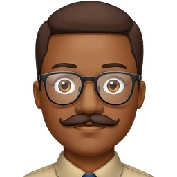 emoji of WHITE man, black hair. blue button up shirt, black glasses, beard and mustache. tattoo of rose on right arm and apple watch emoji | AI Emoji Generator