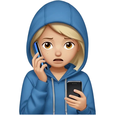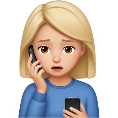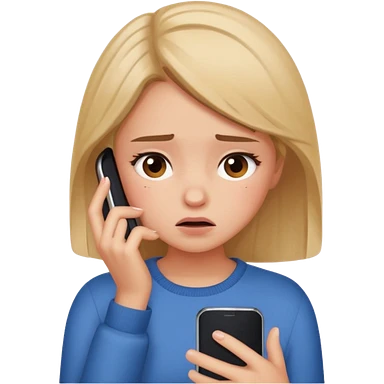 Girl with blue eyes emoji using cell phone confused because her boyfriend keep talking to other people emoji