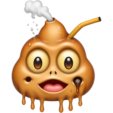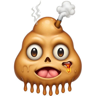EXTREMELY Geeked Emoji of a sebacous gland cell smoking with freaky eyes and leaking and melting emoji