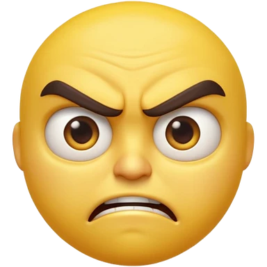 “A high-quality 3D angry emoji, intense facial expression, furrowed eyebrows, narrowed eyes, clenched mouth, vibrant yellow glossy texture, dramatic studio lighting, realistic reflections, smooth rounded shape, ultra-detailed Pixar-style 3D render, isolated on white background, 4K resolution” emoji