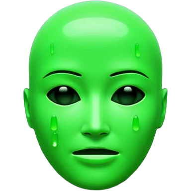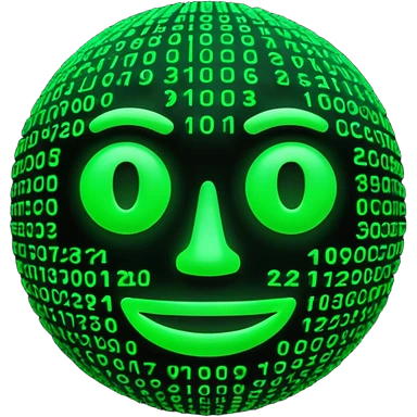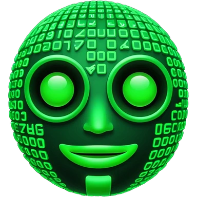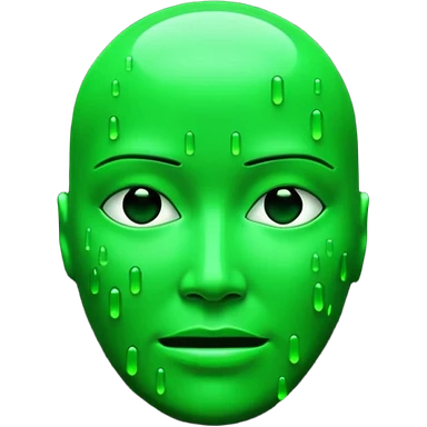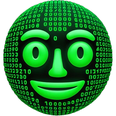 Futuristic 3D emoji made of glowing green Matrix code, digital rain background, cyberpunk neon glow, dark black backdrop, minimalist rounded face, high contrast, cinematic lighting, ultra-sharp, high resolution. emoji