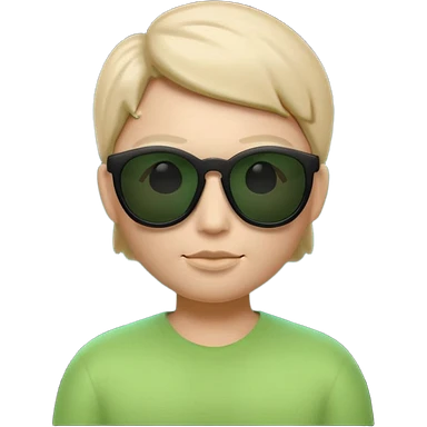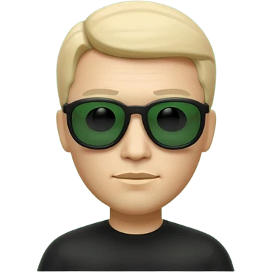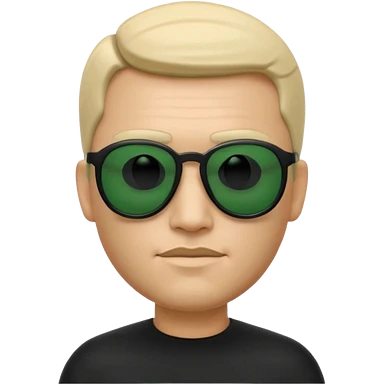 Clean 3D memoji emoji, smooth Apple emoji style, black sunglasses, calm expression, Matrix movie aesthetic, faint green code glow, minimalist, dark cinematic background, high resolution. emoji