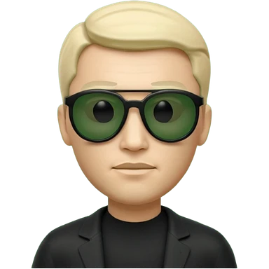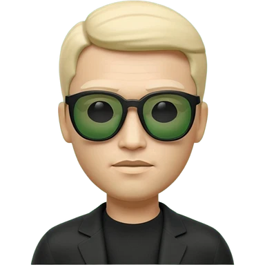 3D memoji-style emoji like Apple Memoji, male character wearing black sunglasses, smooth rounded face, minimalist design, inspired by The Matrix movie, subtle green matrix glow, dark background, cinematic lighting, high quality. emoji