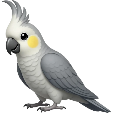 una cacatua ninfa con el cuerpo de color gris y con sus mejillas amarillas y su cresta del color del cuerpo y asla un poco mas flaca emoji