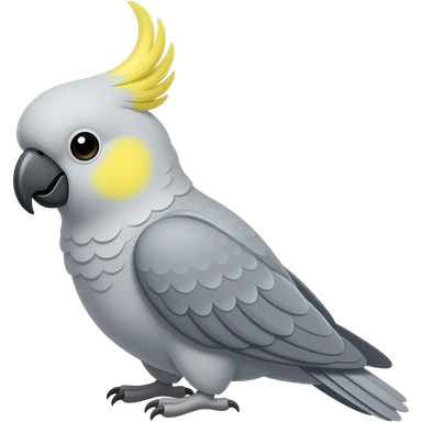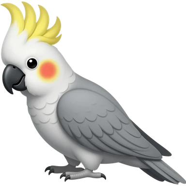 una cacatua ninfa con el cuerpo de color gris la cabeza color amarillo y que tenga las mejillas de color rojo emoji
