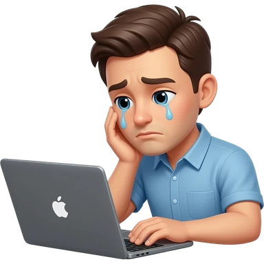 Create an emoji of an exhausted entrepreneur chained to their laptop, with stacks of invoices around them. They have tired eyes, messy hair, and a cold coffee next to them, symbolizing endless work without real progress. emoji
