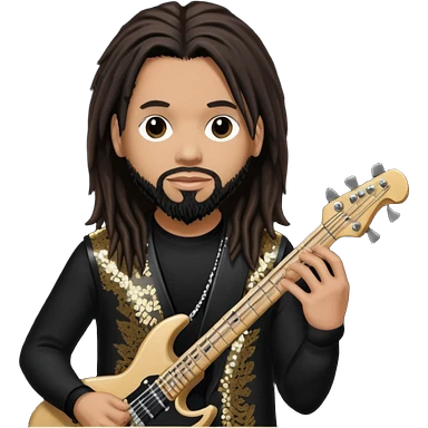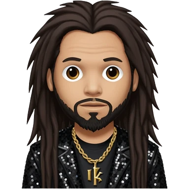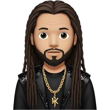 Reginald Fieldy Arvizu from Korn with long dark brown hair, light tan skin, black sequin outfit emoji