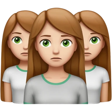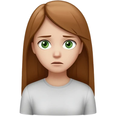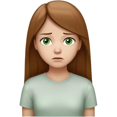 Cartoon emoji of a girl with long, straight light brown hair, fair skin, soft green eyes. Wearing a white top, standing slightly apart from a group, looking unsure and miserable. Nervous, fearful, lacking confidence. Smooth, simple, stylized." emoji