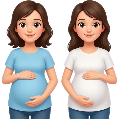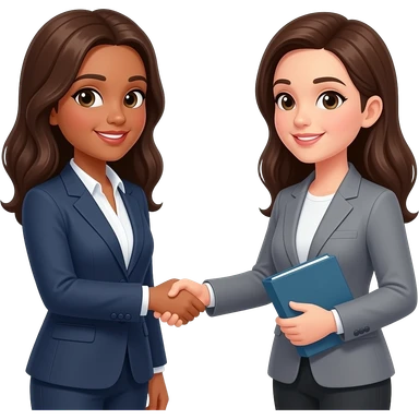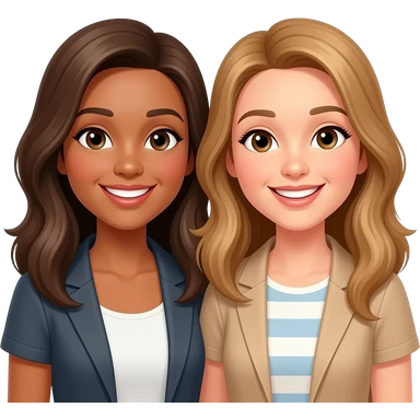 Dos mujeres juntas que una sea de color trigueña cabello largo castaño con una raya en medio polo blanco y de color blanca cabello largo negro polo negro, emoji
