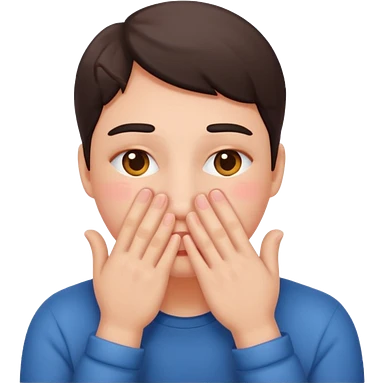 emoji style face merging hand over mouth and flushed face, character covering mouth while blushing and looking surprised emoji | AI Emoji Generator
