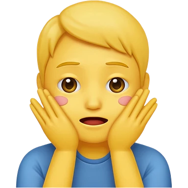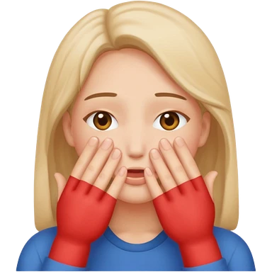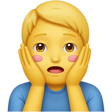 emoji style face fusing hand over mouth and flushed face, hand over mouth, wide open eyes, red cheeks emoji