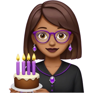 Emoji-style illustration of a cute sarcastic woman, black mourning dress and veil, holding a birthday cake with number 29 candles, ironic expression, RIP 20s theme, flat design, bold outlines, pastel gothic colors, high resolution, clean background, perfect for profile picture emoji | AI Emoji Generator