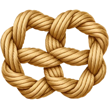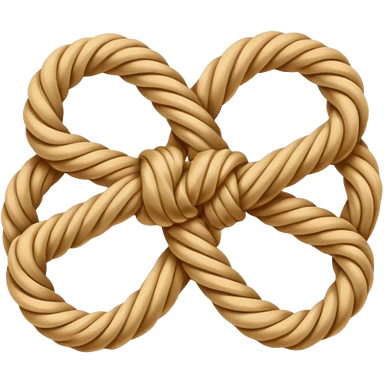 Emoji-style illustration of a neatly tied bowline knot made of natural rope. The knot should form a clean loop with a visible knot structure, rope texture, warm beige and golden tones, isolated on white background, soft shadows, minimal composition.emoji