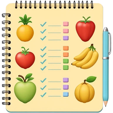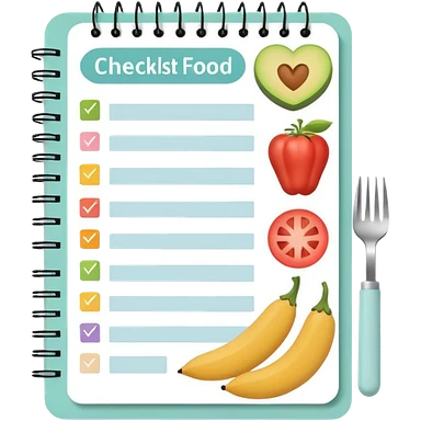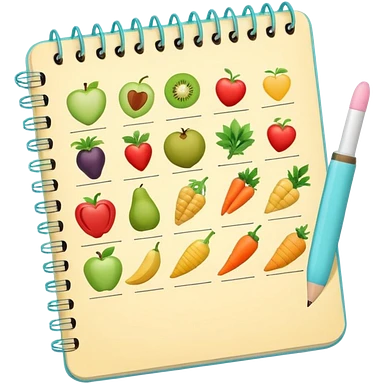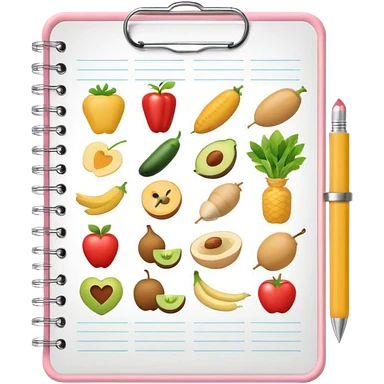 Emoji of checklist notebook with healthy food icons, nutrition planning, flat minimal emoji, pastel colors emoji