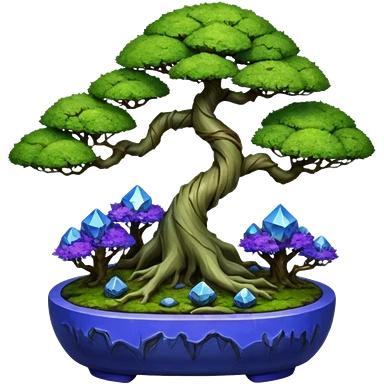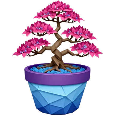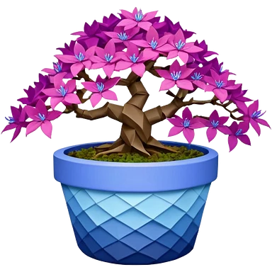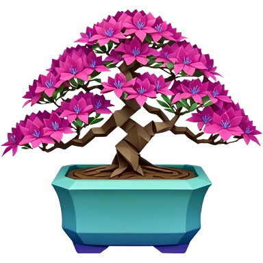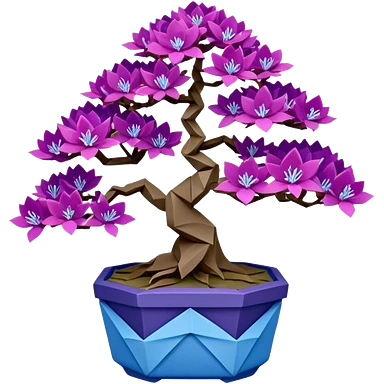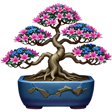 Bonsai hair-fine-leaf group crimson azalea purple and cream blue forest planting in origami style pot emoji