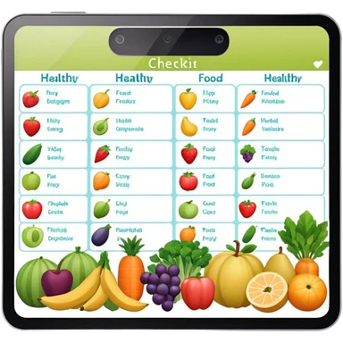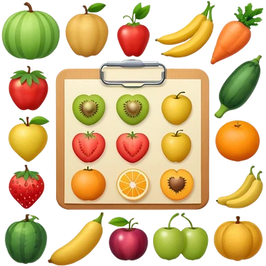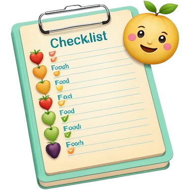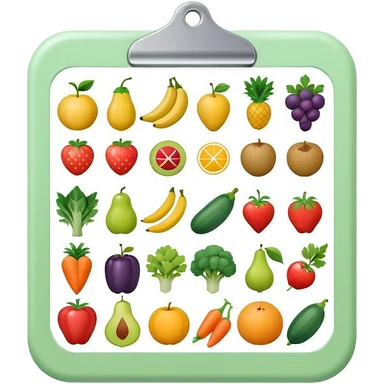 Emoji of checklist with healthy food icons, nutrition planning, flat minimal emoji, pastel colors emoji