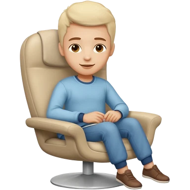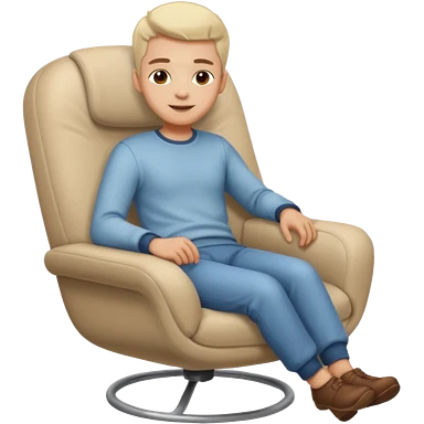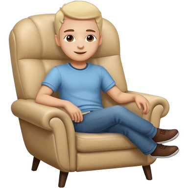 Emoji-style person relaxing on leaning chair, happy and content, rounded features, soft shading, emoji