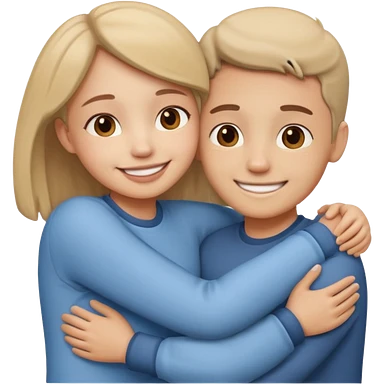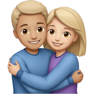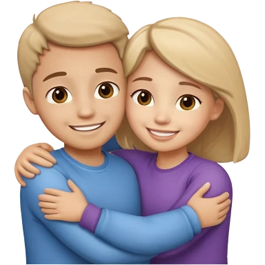 two people hugging side by side, smiling, rounded cute style, soft shading emoji