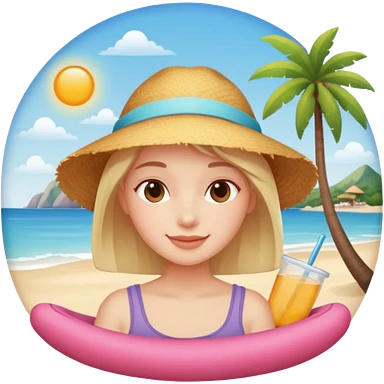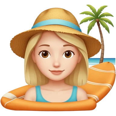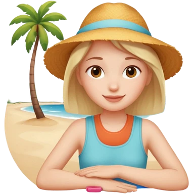 Emoji-style person relaxing on vacation, happy and content, rounded features, soft shading, emoji