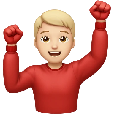 Emoji-style person jumping with fist up, excited expression, rounded cute style, soft shading, emoji | AI Emoji Generator