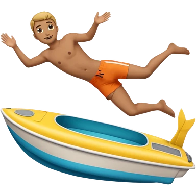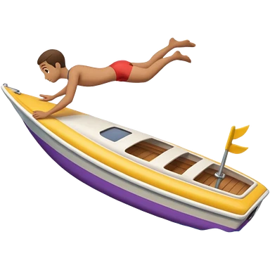 Emoji-style side view of boat with person diving off, rounded cute features, soft shading, colorful, PNG cutout emoji
