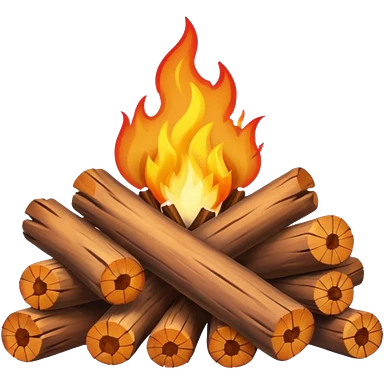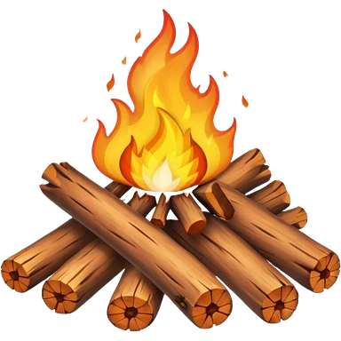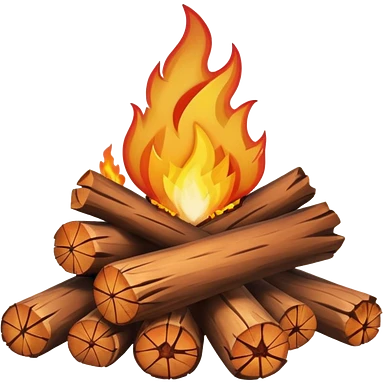 Emoji-style bonfire with logs and flames, cute and rounded, soft shading, bright warm colors emoji