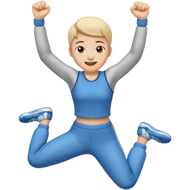 Emoji-style person jumping with fist up, excited expression, rounded cute style, soft shading, emoji